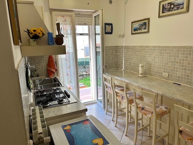 Rif. A29 trilocale piano terra, giardino privato, 100 metri dal mare, 5 posti letto, disponibile luglioagosto